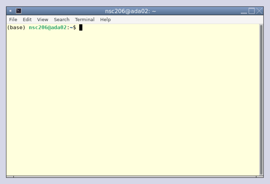 In our case the terminal window looks like the picture below. We are using the terminal window as our shell to interpret our commands to the kernel. Depending on your system and preferences it may look different.