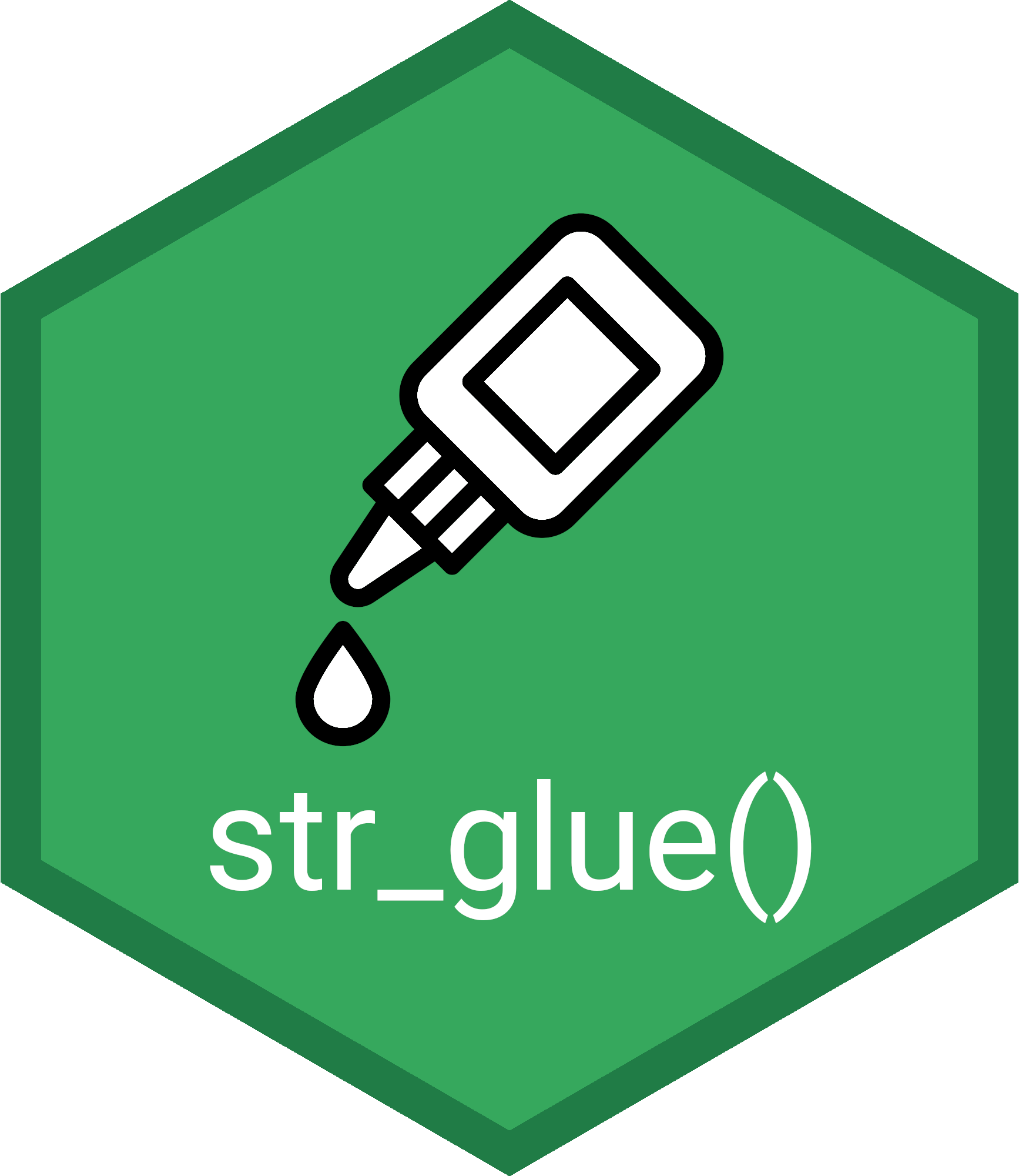 str_c(): Combine strings together (similar topaste0()).str_flatten(): Flatten a vector of strings into one string.str_glue(): Similar tostr_c()but allows you to include variables within the strings to combine.- Variable names are included in the strings with curly braces like so: